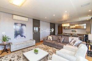 Ficam no imóvel os a móveis planejados na sala, cozinha, suíte, cozinha, área de serviços e escritório, 2 mesas de canto da sala, cooktop, depurador e forno elétrico na cozinha, espelho, box e chuveiro dos banheiros, cortinas instaladas, aquecedor a gás, luminárias lâmpadas instaladas, sistema de climatização instalado, metais instalados, mesa e cadeiras da sala de jantar, lavadora de roupas, moveis da varanda, adega.Agendamento de visitas com 24 horas de antecedência